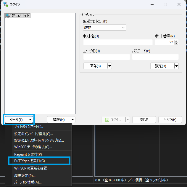 鍵認証の場合は、準備としてお手持ちの秘密鍵をppk化する必要があります。